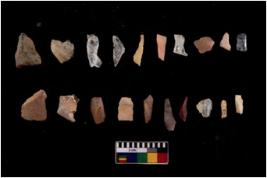 | Description / विवरण | There are n 20 Flake tool; There are multidirectional irregular scar pattern on them. few have blunt edges, Some of them are tapering at one end. |