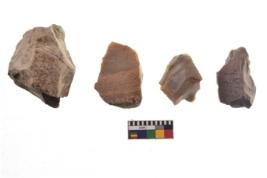 | Description / विवरण | There are n 4 utilized flake cores. There are multidirectional irregular dominant scar pattern on both dorsal and ventral face of the flake cores. Three have blunted edges and one has round edge. |