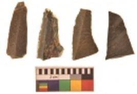 | Description / विवरण | There are n 4 utilized flakes. There are multi directional irregular scar pattern on both dorsal and ventral face of the flakes. One is tapering at one end and three have sharp edges. |