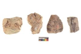 | Description / विवरण | There are n 4 utilized flake cores. There are multidirectional irregular dominant scar pattern on both dorsal and ventral face of the flake cores. Three have blunted edges and one has round edge. |