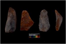 | Description / विवरण | There are n 4 of utilized worked cores and show multidirectional irregular scar pattern on both dorsal and ventral sides. |
