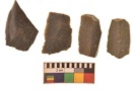 | Description / विवरण | There are n 4 utilized flakes. There are multi directional irregular scar pattern on both dorsal and ventral face of the flakes. Three are tapering at one end and one has sharp edge. |