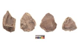 | Description / विवरण | There are n 4 utilized flake cores. There are multidirectional irregular dominant scar pattern on both dorsal and ventral face of the flake cores. One has sharp edge and three have blunted edges. |
