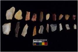 | Description / विवरण | There are n 20 flakes tool; there are multidirectional irregular scar pattern on them; made of short flakes and few have tapering edges. |
