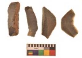 | Description / विवरण | There are n 4 utilized flakes. There are multi directional irregular scar pattern on both dorsal and ventral face of the flakes. Three are tapering at one end and one has sharp edge. |