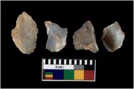 | Description / विवरण | There are n 4 utilized flake cores. There are multi directional irregular scar pattern on them. One has sharp edge and three have blunted edge. |