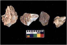 | Description / विवरण | Specimen of flake tools with prominent flaking marks. They are made up of a short flakes with sides trimmed. |