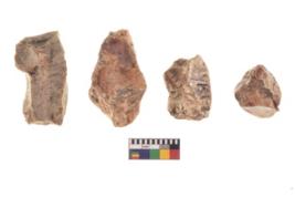 | Description / विवरण | There are n 4 utilized flake cores. There are multidirectional irregular dominant scar pattern on both dorsal and ventral face of the flake cores. Two are tapering at one end and two have blunted edges. |