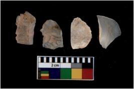 | Description / विवरण | There are n 4 utilized flake cores. There are multi directional irregular scar pattern on them. One has sharp edge and three have blunted edge. |