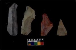 | Description / विवरण | There are n 4 of utilized worked cores and show multidirectional irregular scar pattern on both dorsal and ventral sides. |