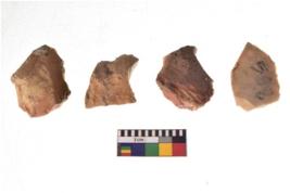 | Description / विवरण | There are n 4 utilized flake cores. There are multidirectional irregular dominant scar pattern on both dorsal and ventral face of the flake cores. Three have flat base and one has blunted edge. |