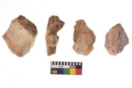 | Description / विवरण | There are n 4 utilized flake cores. There are multidirectional irregular dominant scar pattern on both dorsal and ventral face of the flake cores. All of them are tapeing at one end. |