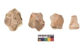 | Description / विवरण | There are n 4 utilized flake cores. There are multidirectional irregular dominant scar pattern on both dorsal and ventral face of the flake cores. Two have flat base and two have blunted edges. |