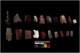 | Description / विवरण | Specimen of flakes tool with prominent flaking marks. It made up of a short flakes with sides trimmed. |