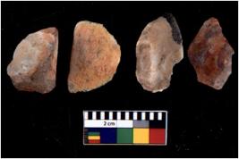 | Description / विवरण | Specimen of flake tools with prominent flaking marks. They are made up of a short flakes with sides trimmed. |