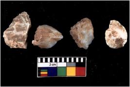 | Description / विवरण | Specimen of flake tools with prominent flaking marks. They are made up of a short flakes with sides trimmed. |