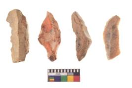 | Description / विवरण | There are n 4 utilized flake cores. There are multidirectional irregular dominant scar pattern on both dorsal and ventral face of the flake cores. All of them are tapeing at one end. |