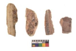 | Description / विवरण | There are n 4 utilized flake cores. There are multidirectional irregular dominant scar pattern on both dorsal and ventral face of the flake cores. All of them are tapeing at one end. |
