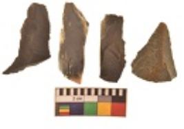 | Description / विवरण | There are n 4 utilized flakes. There are multi directional irregular scar pattern on both dorsal and ventral face of the flakes. Two are tapering at one end and two have sharp edges. |