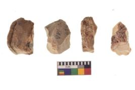 | Description / विवरण | There are n 4 utilized flake cores. There are multidirectional irregular dominant scar pattern on both dorsal and ventral face of the flake cores. All of them are tapeing at one end. |