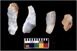 | Description / विवरण | Specimen of flake tools with prominent flaking marks. They are made up of a short flakes with sides trimmed. |