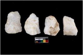 | Description / विवरण | There are n 4 utilized flake cores. Two have blunted edges and two have round edges. |