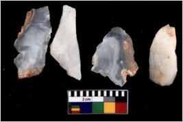 | Description / विवरण | Specimen of flake tools with prominent flaking marks. They are made up of a short flakes with sides trimmed. |
