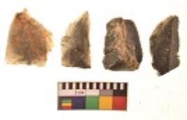 | Description / विवरण | There are n 4 utilized flakes. There are multi directional irregular scar pattern on both dorsal and ventral face of the flakes. Two have sharp edges and two have blunted edges. |