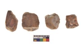 | Description / विवरण | There are n 4 utilized flake cores. There are multidirectional irregular dominant scar pattern on both dorsal and ventral face of the flake cores. Two have blunted edges and two have round edges. |
