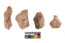 | Description / विवरण | There are n 4 utilized flake cores. There are multidirectional irregular dominant scar pattern on both dorsal and ventral face of the flake cores. Two are tapering at one end and two have blunted edges. |