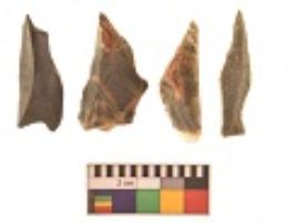| Description / विवरण | There are n 4 utilized flakes. There are multi directional irregular scar pattern on both dorsal and ventral face of the flakes. One is tapering at one end and three have sharp edges. |