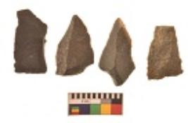 | Description / विवरण | There are n 4 utilized flakes. There are multi directional irregular scar pattern on both dorsal and ventral face of the flakes. Two are tapering at one end and two have sharp edges. |