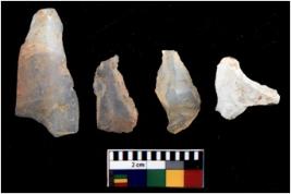 | Description / विवरण | There are n 4 utilized flake cores. There are multidirectional irregular scar pattern on both dorsal and ventral face of the flake cores. One has sharp edges and three have blunted edges. |