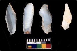 | Description / विवरण | There are n 4 utilized flake blades. There are multidirectional irregular scar pattern on both dorsal and ventral face of the flake blades. One has sharp edges and three have blunted edges. |
