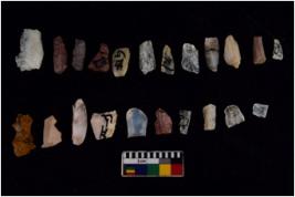| Description / विवरण | There are n 20 Flake tool; There are multidirectional irregular scar pattern on them. Some of them are tapering at one end, few have pointed functional top. |