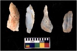 | Description / विवरण | There are n 4 utilized flake cores. There are multidirectional irregular scar pattern on both dorsal and ventral face of the flake cores. One has sharp edges and three have blunted edges. |
