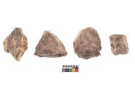 | Description / विवरण | There are n 4 utilized flake cores. There are multidirectional irregular dominant scar pattern on both dorsal and ventral face of the flake cores. Two have blunted edges and two have round edges. |