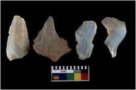 | Description / विवरण | There are n- 04 objects; among them three have chalcedony, one has chert, and two have sharp edges, and two have tapering edges. |