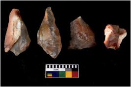 | Description / विवरण | There are n 4 cores; there are multidirectional irregular scar pattern on them. The reverse bulb and platform can be seen. |