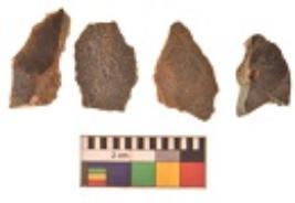 | Description / विवरण | There are n 4 utilized flakes. There are multi directional irregular scar pattern on both dorsal and ventral face of the flakes. Two are tapering at one end and two have sharp edges. |