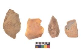 | Description / विवरण | There are n 4 utilized flake cores. There are multi directional irregular scar pattern on both dorsal and ventral face of the flake cores. Two are tapering at one end and two have blunted edges. |