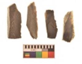 | Description / विवरण | There are n 4 utilized flakes. There are multi directional irregular scar pattern on both dorsal and ventral face of the flakes. Three are tapering at one end and one has sharp edge. |