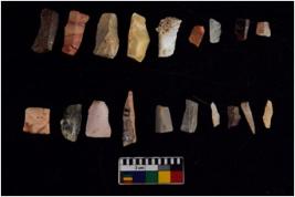 | Description / विवरण | There are n 20 Flake tool; There are multidirectional irregular scar pattern on them. few have blunt edges, Some of them are tapering at one end. |