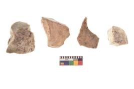 | Description / विवरण | There are n 4 utilized flake cores. There are multi directional irregular scar pattern on both dorsal and ventral face of the flake cores. One has sharp edge and three have blunted edges. |