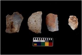 | Description / विवरण | There are n 4 cores; there are multidirectional irregular scar pattern on them. The reverse bulb and platform can be seen. |