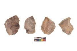 | Description / विवरण | There are n 4 utilized flake cores. There are multi directional irregular scar pattern on both dorsal and ventral face of the flake cores. Three have flat base and one has blunted edge. |