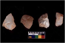 | Description / विवरण | There are n 4 utilized flake cores. There are multidirectional irregular scar pattern on both dorsal and ventral face of the flake cores. One has sharp edges and three have blunted edges. |