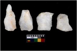 | Description / विवरण | There are n 4 utilized flake cores. One is tapering at one end and three have blunted edges. |