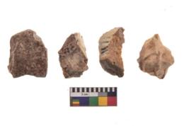 | Description / विवरण | There are n 4 utilized flake cores. There are multi directional irregular scar pattern on both dorsal and ventral face of the flake cores. Two have flat base and two have blunted edges. |
