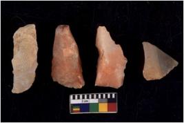 | Description / विवरण | There are n 4 utilized flake cores. There are multidirectional irregular scar pattern on both dorsal and ventral face of the flake cores. One has sharp edges and three have blunted edges. |